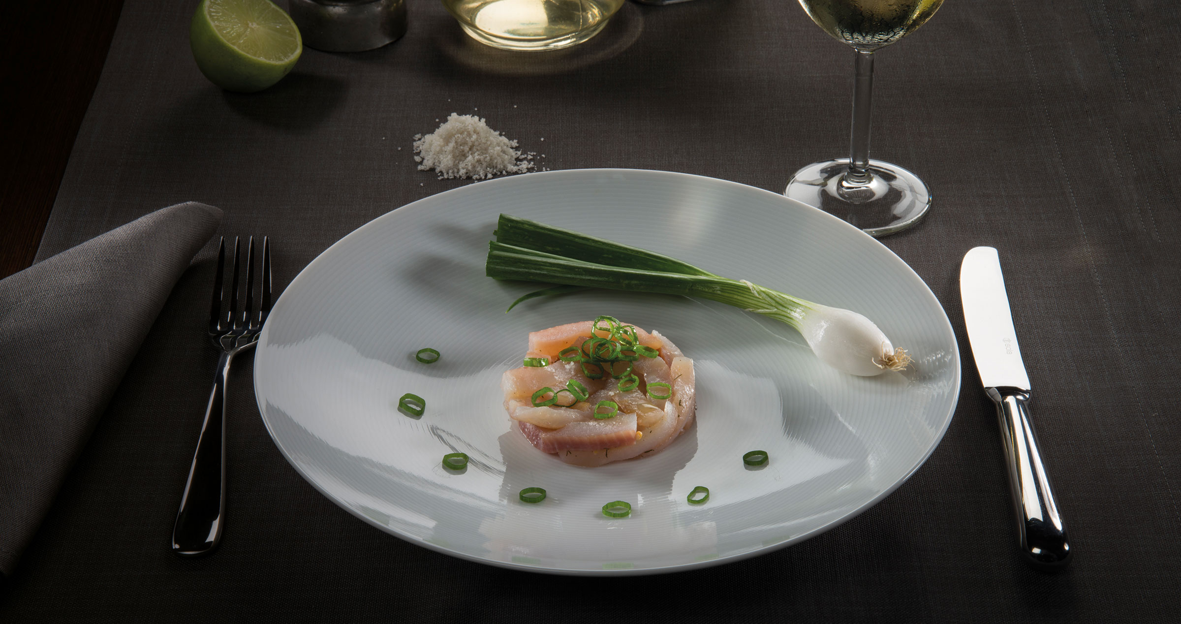 Disposer les lanières de perches sur les assiettes en vous aidant, si besoin, d’un cercle à pâtisserie.