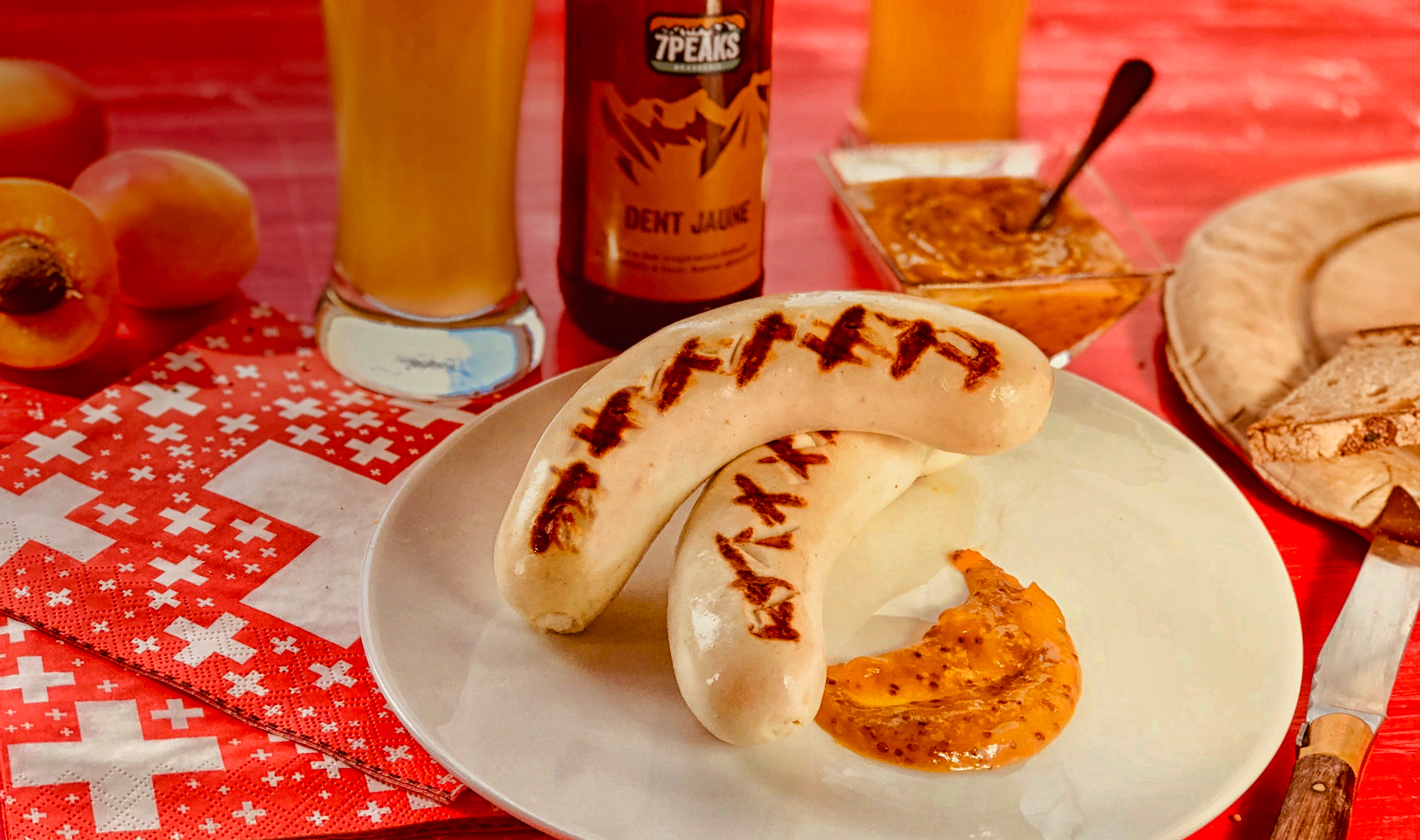 Inciser très légèrement les saucisses de perches LOË, badigeonner-les d’huile de pépins de raisin (pour éviter qu’elles n’attachent à la grille) et les poser sur le grill. Cuire 3-4 min. de chaque côté et servir sans attendre avec de la moutarde à l’abricot et du pain au levain.
